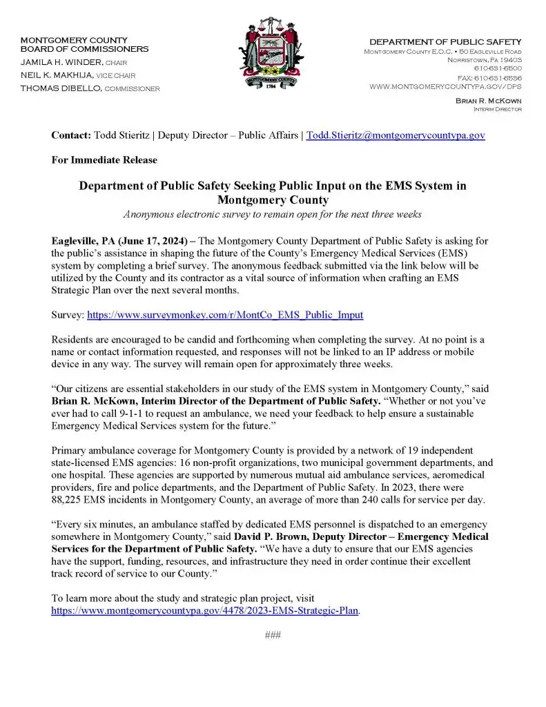 Information for Public Survey-EMS Study and Recommendations Department of Public Safety June 17, 2024 Page, Wolfberg, and Wirth (PWW) are a consulting group hired by the County to conduct an […]