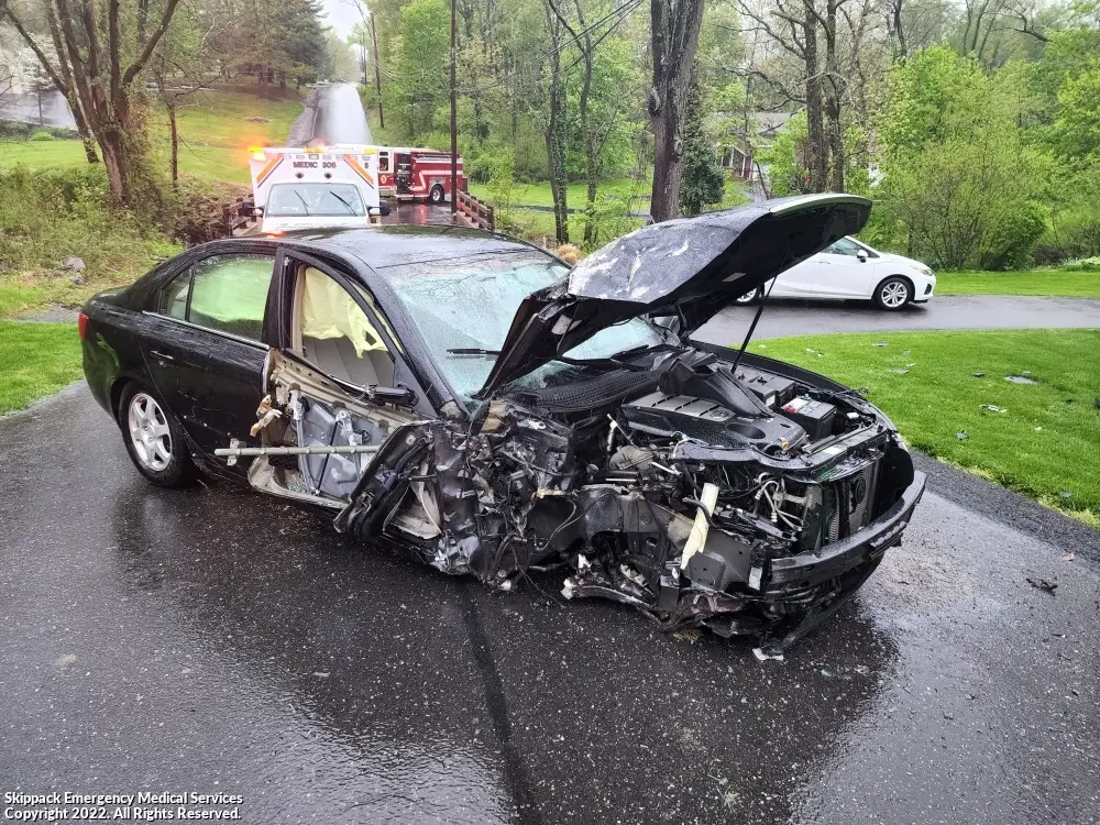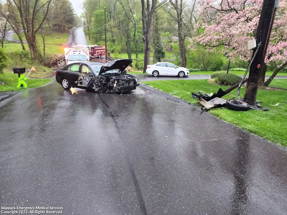 On May 6 around 17:33 hrs, due to our truck being on a call, medic 308 covered us on a one vehicle accident vs. a telephone pole. One patient was evaluated and transported to the hospital for further evaluation.